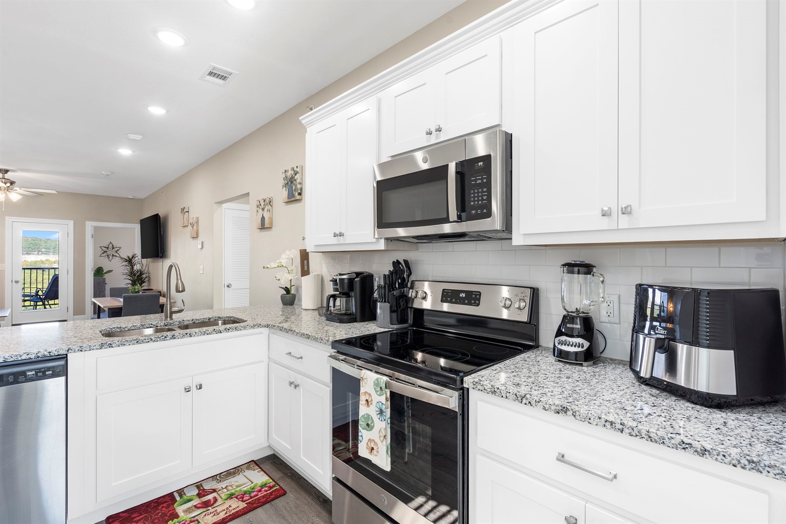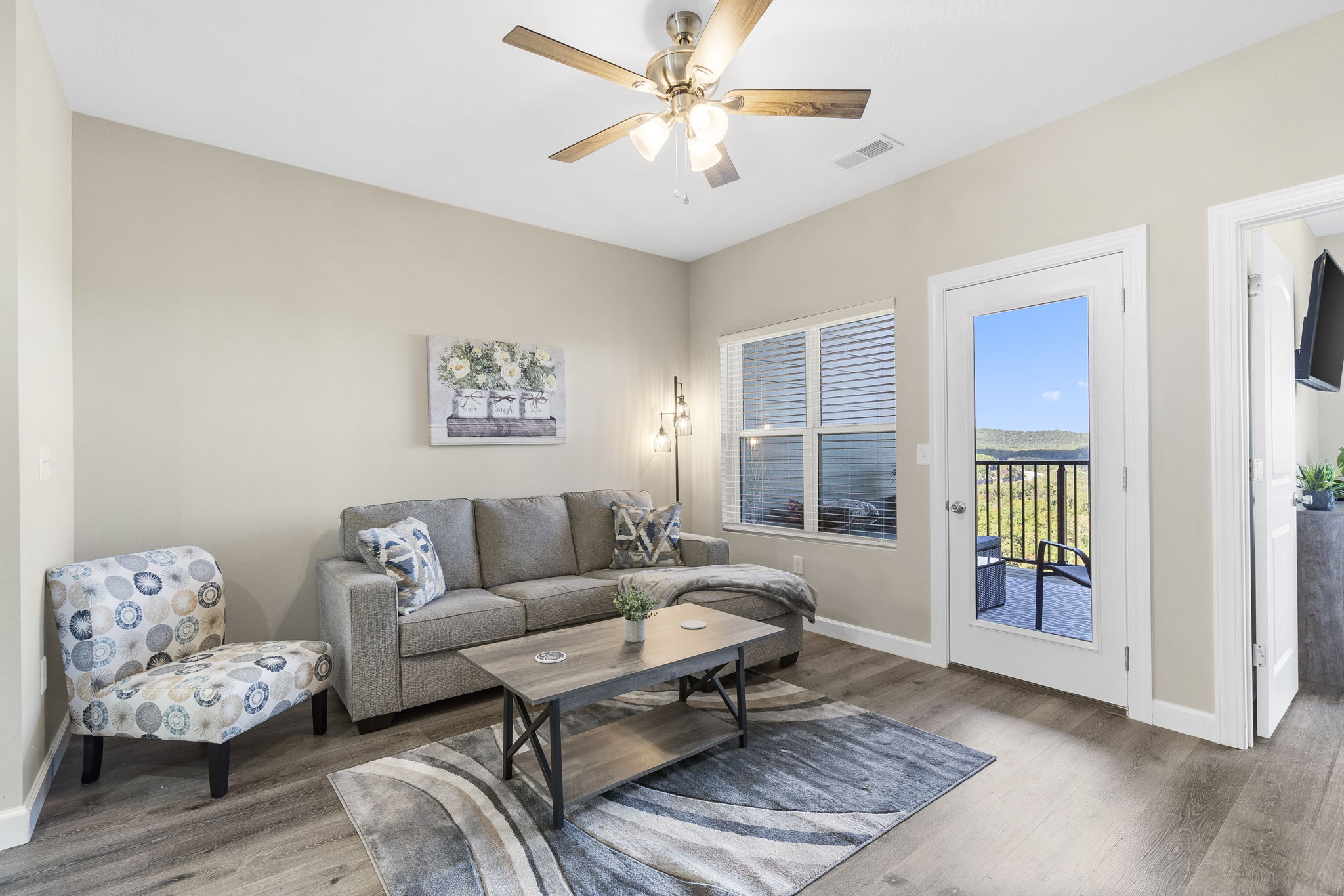 New construction open concept with 9 foot ceilings, walk-in level NO steps. Located in Branson, 3.5 miles from Titanic Museum and Silver Dollar City is 4.4 miles. Private balcony with city views, free parking, free Wifi and outdoor swimming pool.